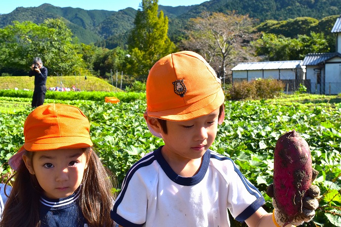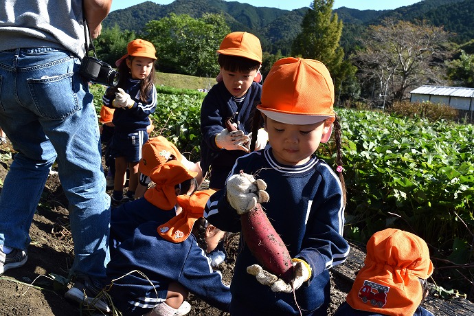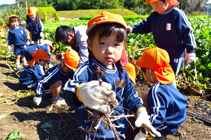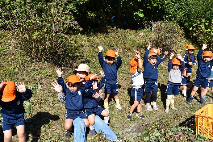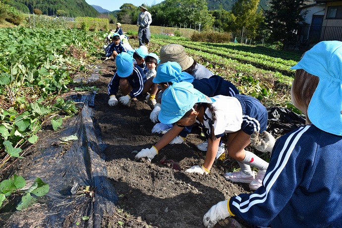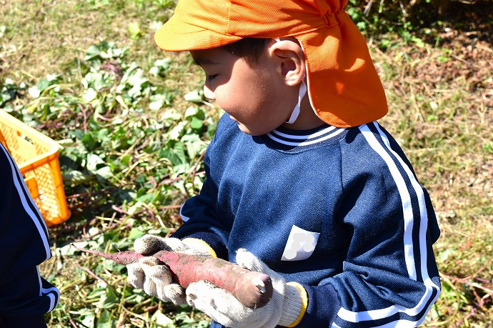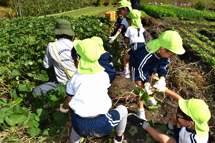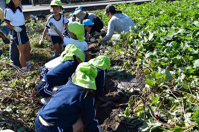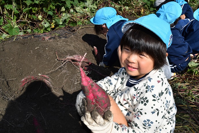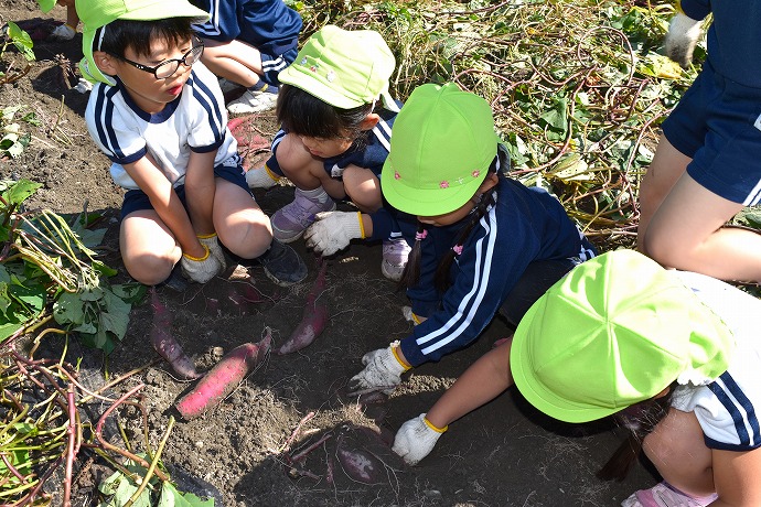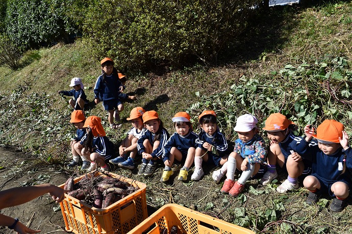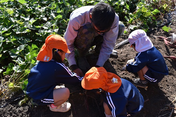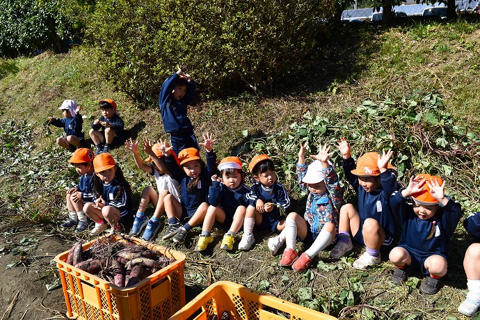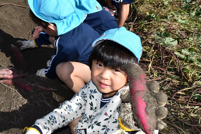 朝から一日、青空に恵まれた最高の秋日和のお芋掘り遠足となりました。保護者の皆様には行き帰りのお見送りとお迎えを有難うございました。そして素敵な農園さんご夫婦がご一緒下さり、お陰で楽しく思い出深い秋の遠足となりました。