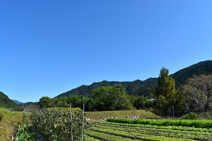 綺麗に両端に除けられたマルチング。黒マルチは雑草が生えにくくなるメリットと、太陽の熱を受けて土の温度が少し高くなることで春の植えつけの時に苗が根づきやすくなるのでしょうか。大原は京都市内よりも日中の気温は幾分低く、夜や朝方は涼しめなので、野菜にとっては市内よりも過ごしやすいのではないかと予想されます。
