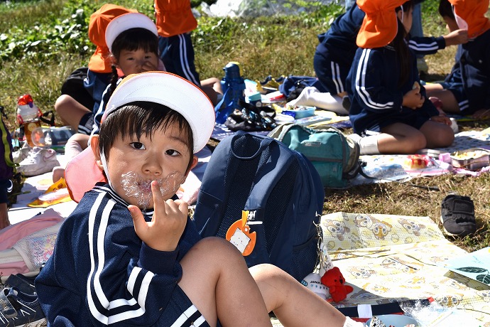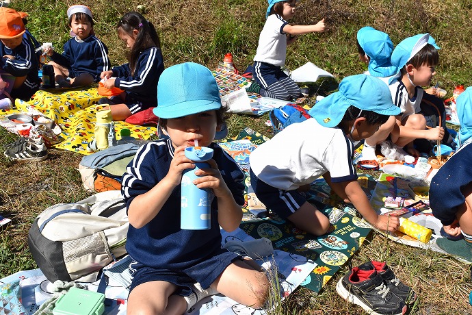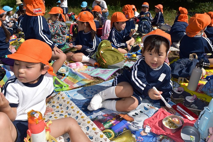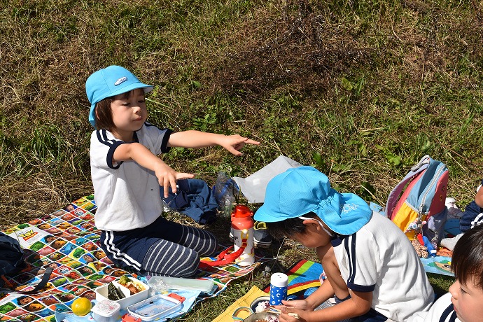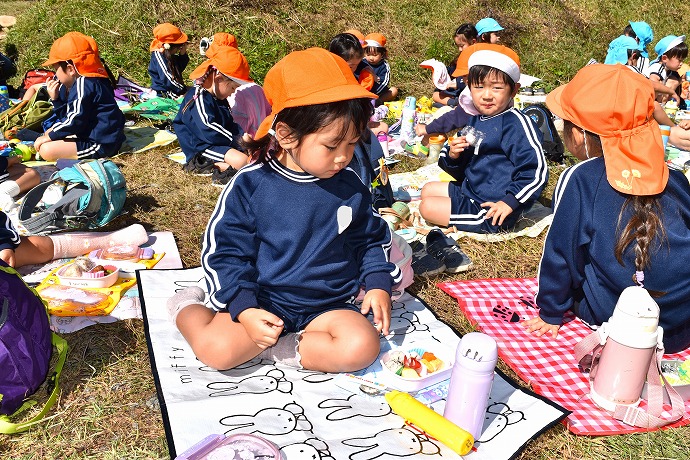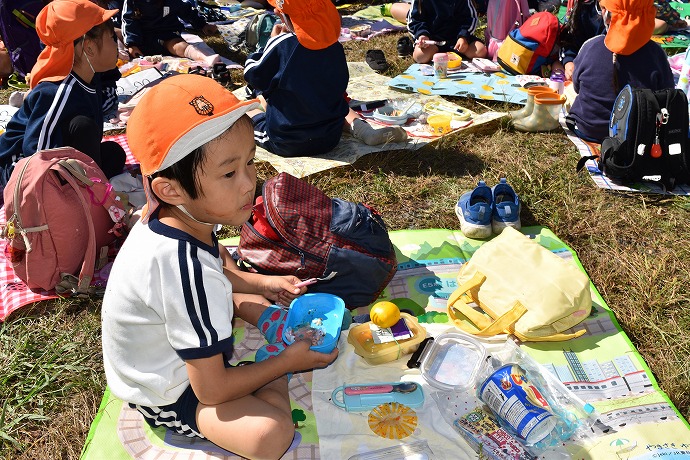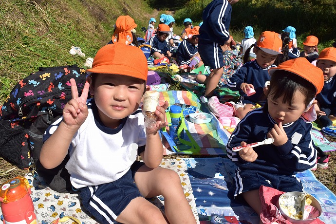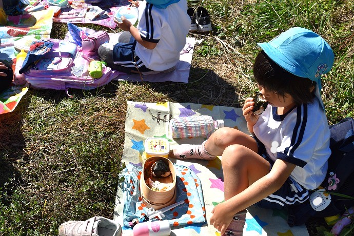 さてその頃、年中少クラスはお弁当をいただいていました。