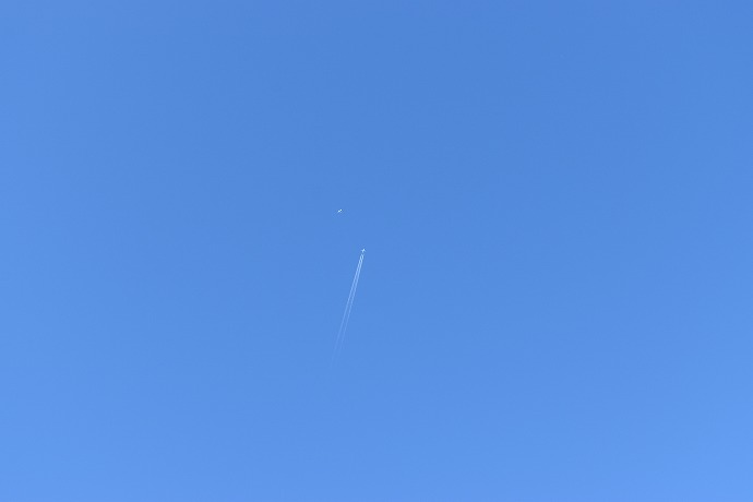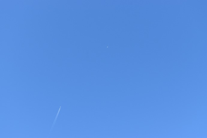 下からも飛行機がやってきました。ぶつからないかなあ?と見ていると、