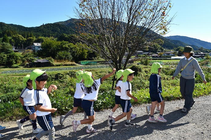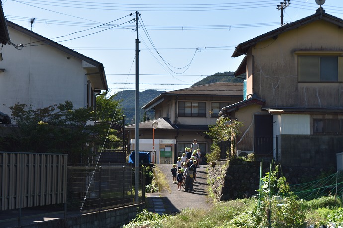 大原の広々とした景色が広がります。左右の畑の黒い土の香りが漂ってきそうな空気をみんなで胸いっぱいに吸いながら歩きました。