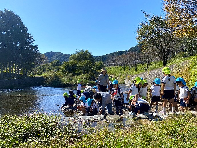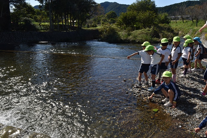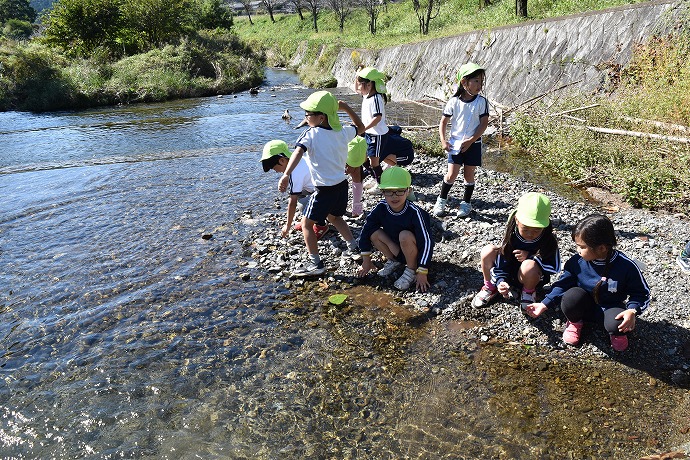 綺麗! すでに年長クラスは川の近くで眺めています。