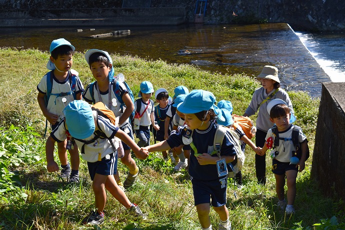 みんなで来た道を戻ります。気分も上々、年長クラスは歌をうたいながら♪