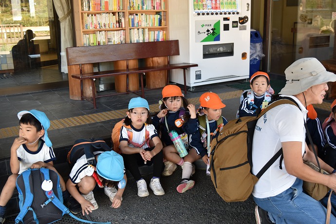 ママ…と一言つぶやくHちゃん。お話していると気持ちが切り替えられます。数名が満3歳で登園後一週間で遠足に😲みんなえらい✨