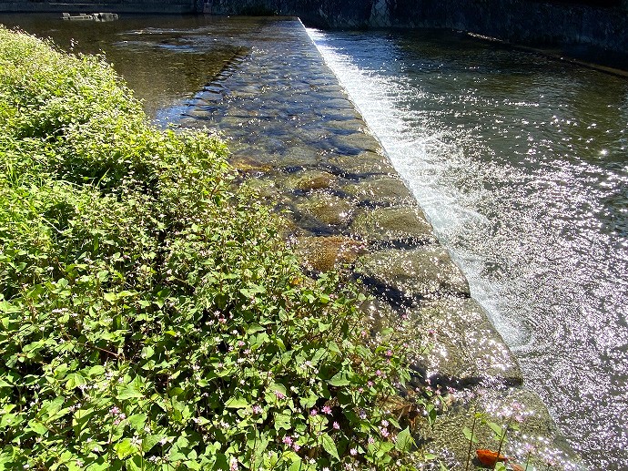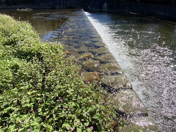 なんて美しい落差工!川幅いっぱいに造られた4段の滝がとても綺麗です💙