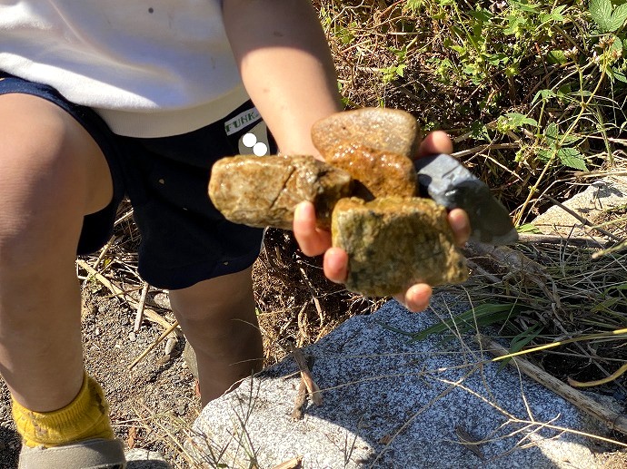 最後に、一眼レフ以外に携帯の写真もありましたので付記します。滝の合間に逃げ込むサワガニを掴んで手にしたり、フラットな綺麗な石を水の中から探して手にしたり…。キラキラと輝く幸せな時間でした。Nくんが手にした中から選んで渡してくれた一個の石。机の上のその石を見ては楽しかったこの日が思い出されます。