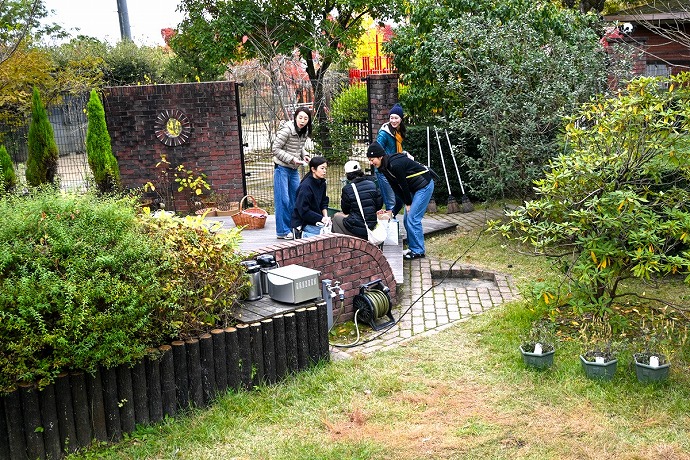 お二人のKママ。ホースリールの周辺をお手入れ中。