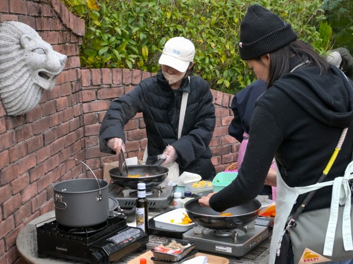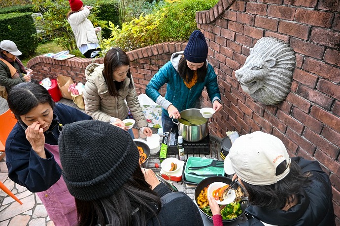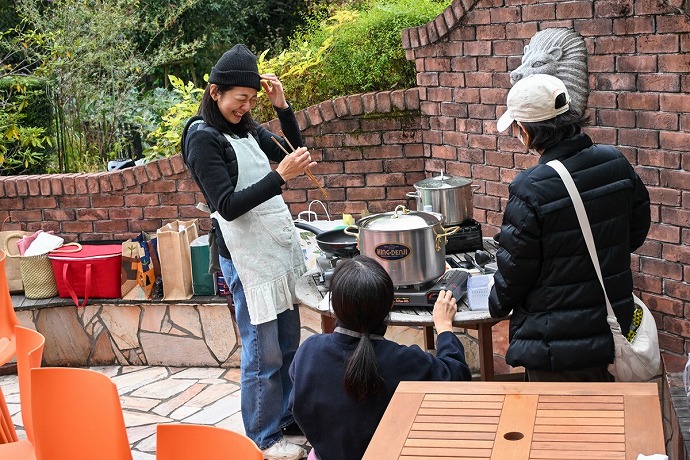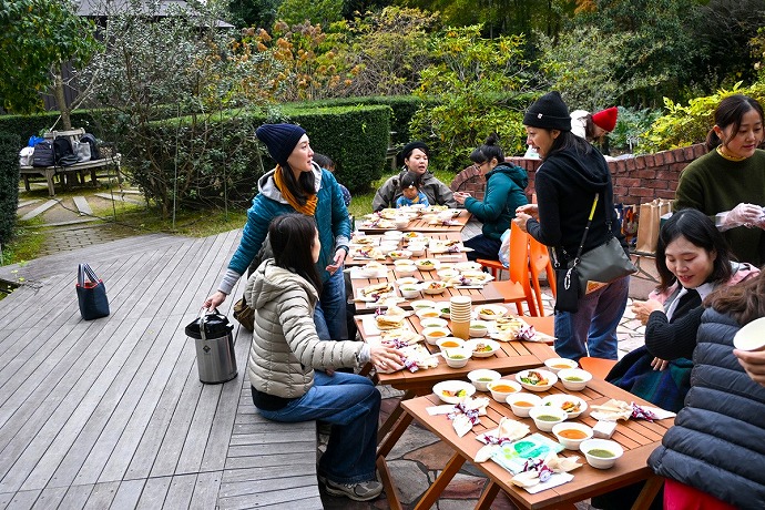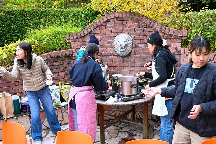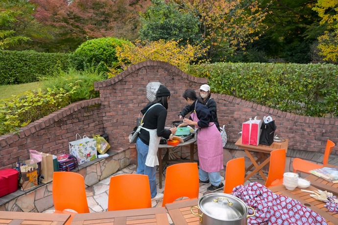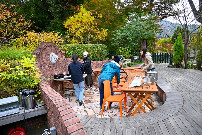 早めにママ達がご来園。お掃除の傍ら、お料理のためのセッティングがはじまりました。