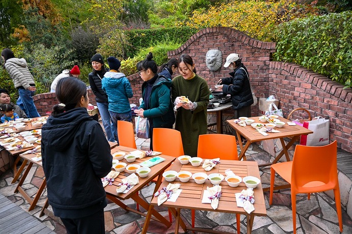 お話が弾みます。陽は射さない曇り空ですがそう寒くはないママの日。