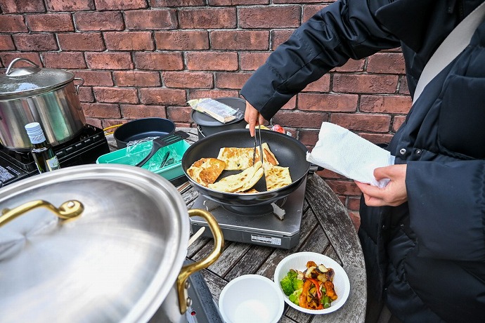 一人二種類のカレーとナン✨ ナンは壁泉横のサイドテーブルでUママがオーブントースターで焼いて下さいました!