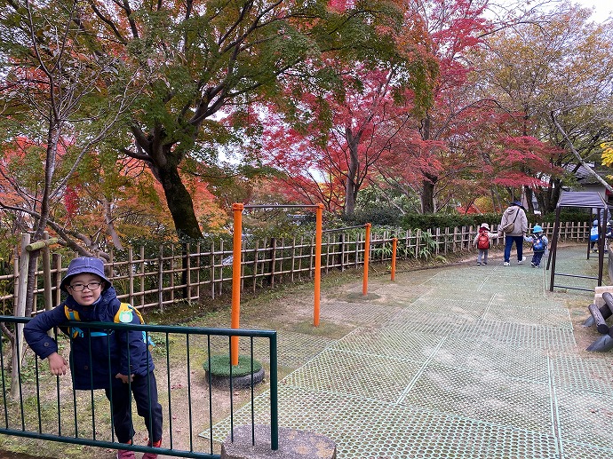 と言いつつ、先に駆けていったTくん。モミジ紅葉もすすみイチョウも黄色が一番鮮やかな今。