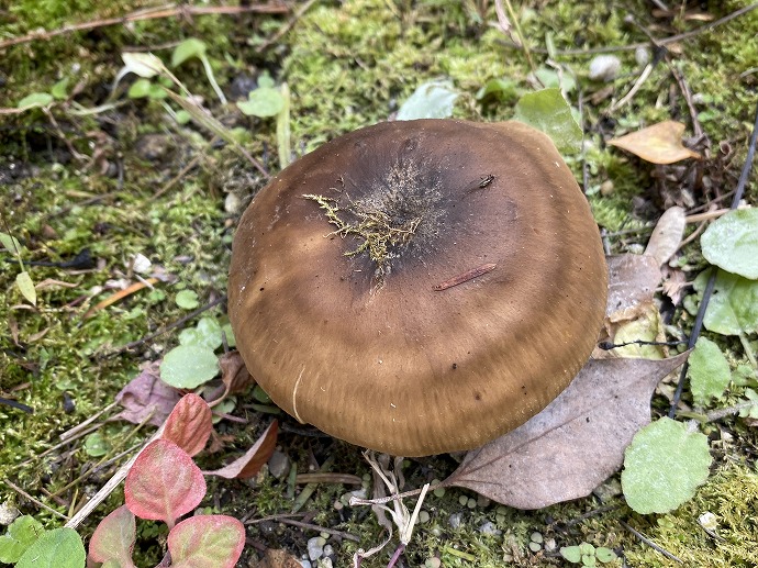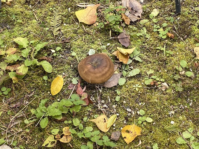 早速調べてみると、カサの真ん中が少しふくらむ特徴がある“コザラミノシメジ”のようです。食用とありますがキノコは難しいですね。