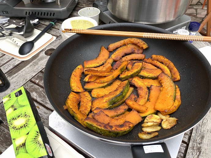 ラグビーボールのようなロロンかぼちゃは私も大好きな種類の一つ。北海道から送ってこられたものを使ってKママがご準備下さました。