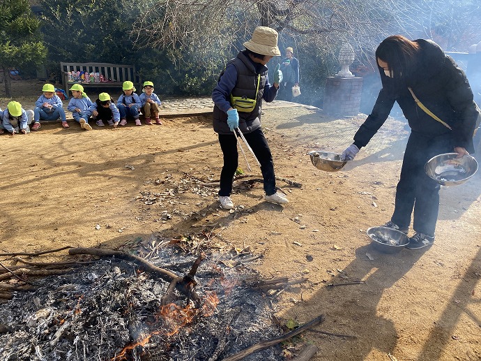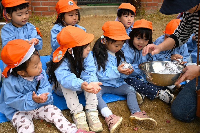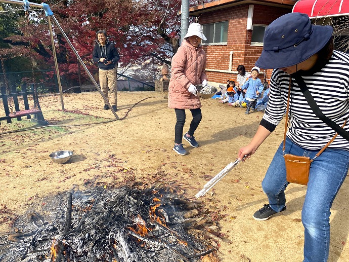 - 12月8日 (金) /🍠みんなで焼き芋🔥をしたよ!(年中少クラス&園庭開放の未就園児さん親子も一緒に🍠👦👧👩🍠12/1(金)記録