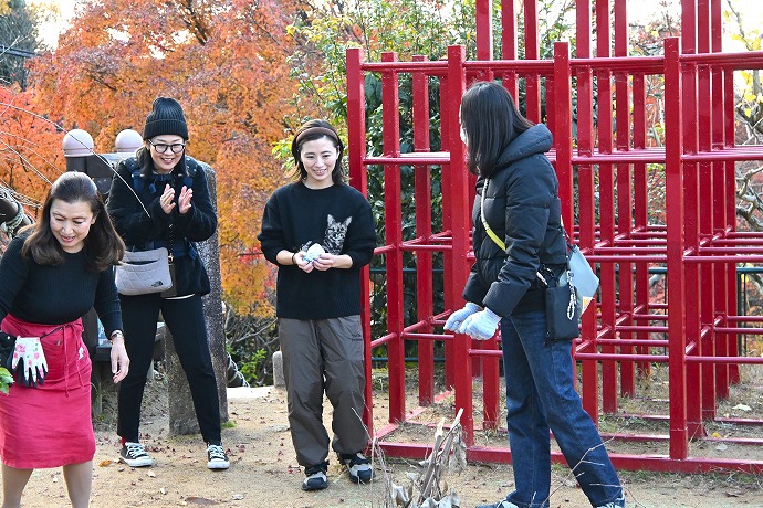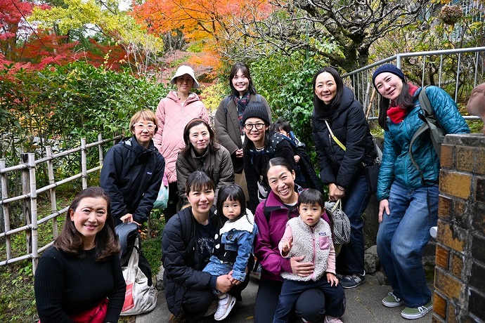 お片付けをして下さりちょうど石段を下りて来られたママ達。ふと見ると背景に晩秋の彩りが広がっていたので思わず残っておられたママ達で恒例の記念写真を撮りました📸🍁🍂