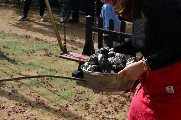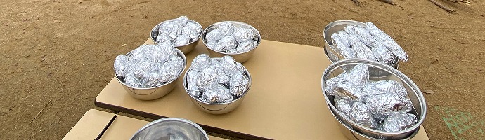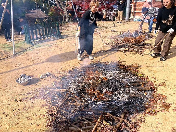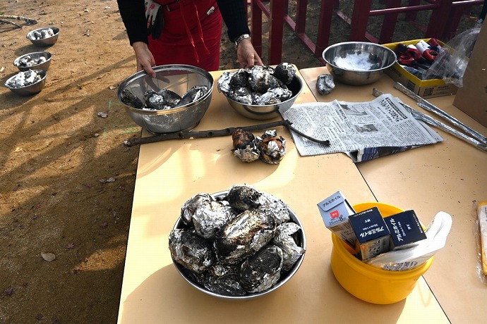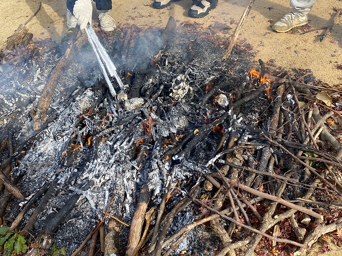 それぞれの焚火の中には30個近いたくさんのお芋が入っています🍠