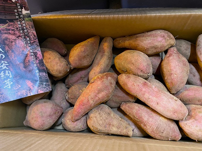 種子島から何ケースか届いた安納芋。1947年頃に種子島の安納地区で栽培されたのが安納芋の始まりだそうです。四代目となられる農園さんから送っていただきました。熾火にじっくり当たると蜜が溢れてくる安納芋🍠たっぷりと潮風を受けて育ち、柔らかくて鉄分、ミネラルたっぷりのお芋でした🍠