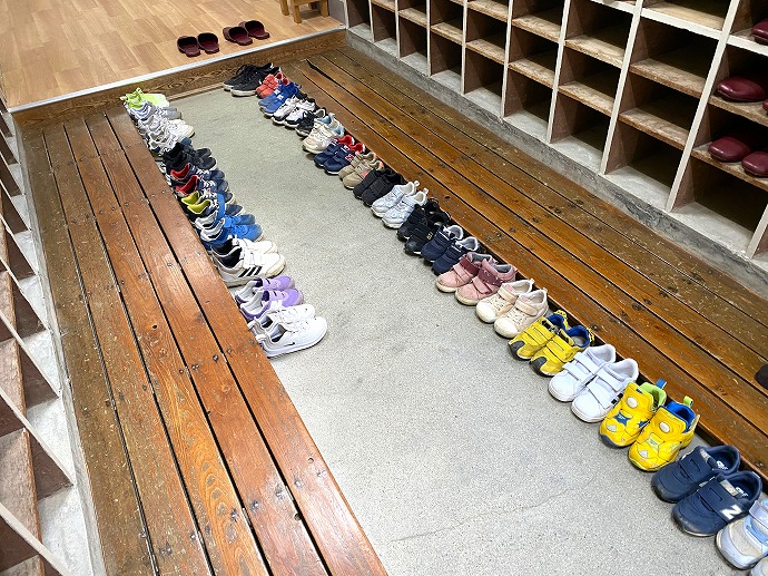 お誕生会の日に第三園舎に行くといつもお靴がきちんと揃っていてみんなはすでに会場の中。全学年共通で11月中に練習してきたお歌「こぎつね」をみんなで歌い園長先生からのお話があります。そしてお誕生月の子ども達は前に出て顔写真入りのフォトフレーム、クラスの先生からのお祝いメッセージカード、お誕生絵本をもらって前に並びます。