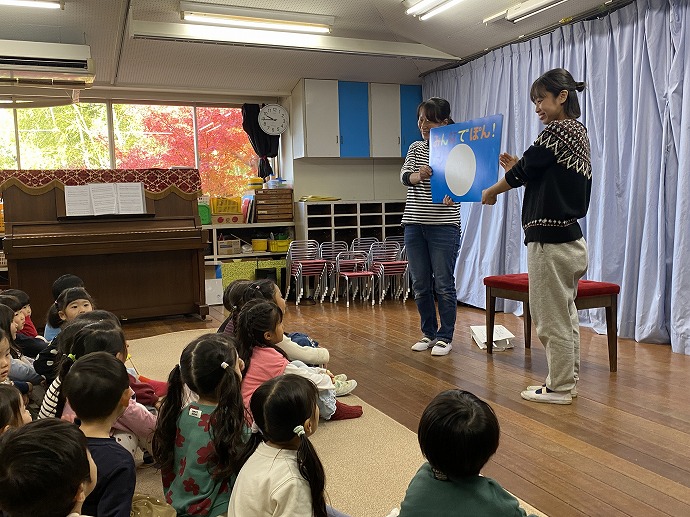 各学年からのお歌のプレゼントをいただいた後、先生達に大型絵本を読んでもらいました。11月生まれの子ども達とともに私もお祝いしてもらった嬉しい日となりました🌿