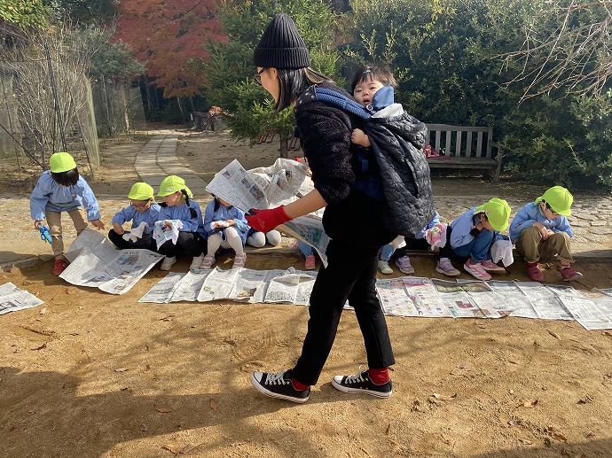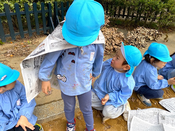 - 11月29日 (火) / 紅葉の落ち葉🍂を拾って描く🖌(年長クラス11/7(月)~記録)・焼き芋🍠したよ(年中長11/22(火)記録)・ひみつの庭の”ママの日”だより✾(11/22(火)記録)