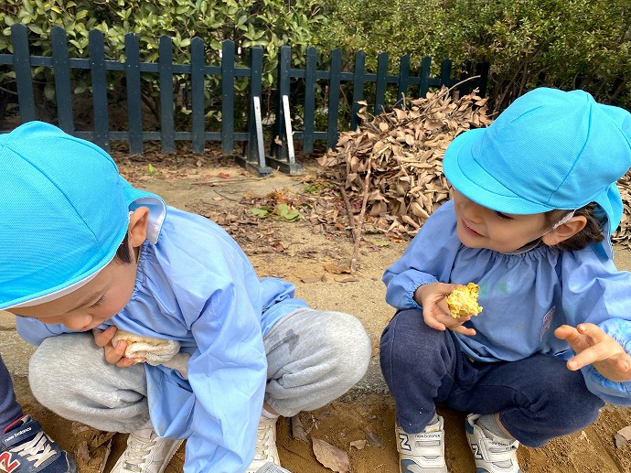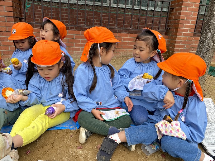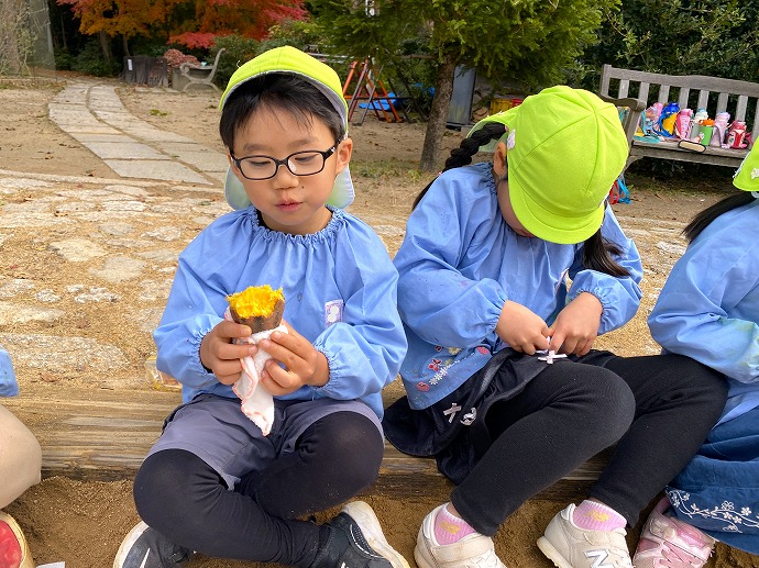未就園児Yちゃんもご一緒され、お芋をぺろりと食べられました🍠晩秋の焼き芋をご一緒いただいてよかったです😊