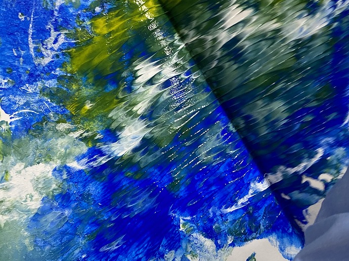 きれいな色~💙 もう一枚の紙に対称に写し出される色模様✨