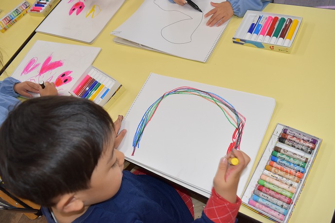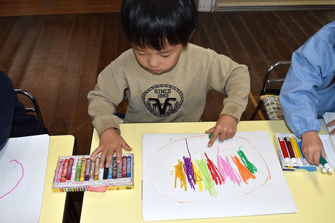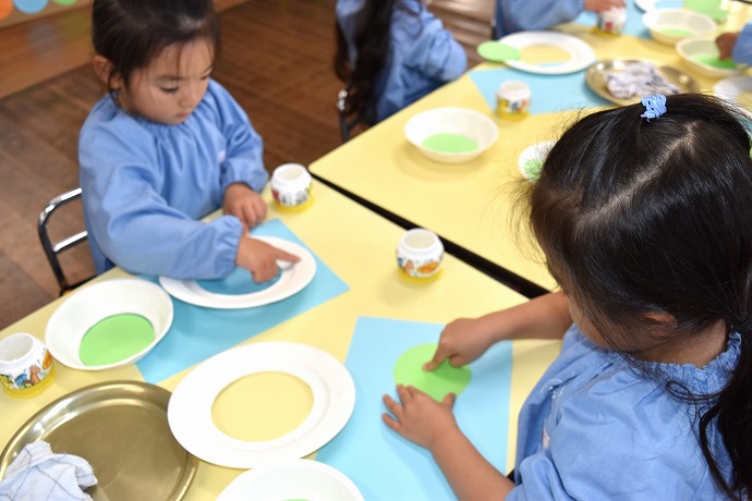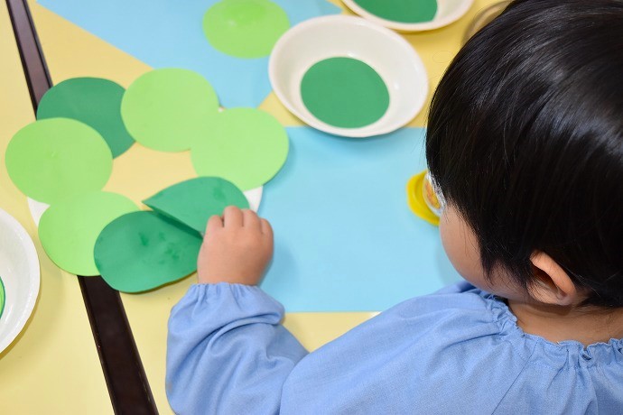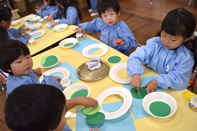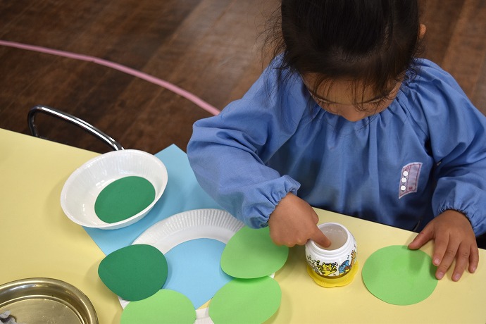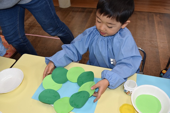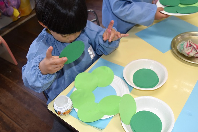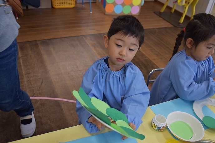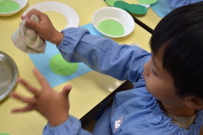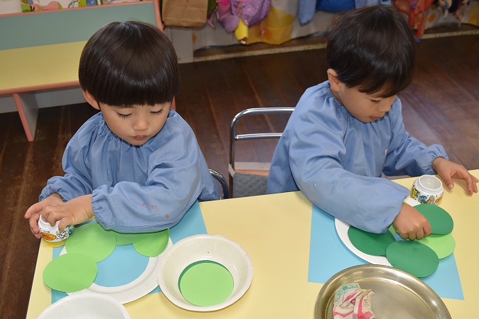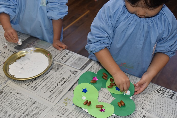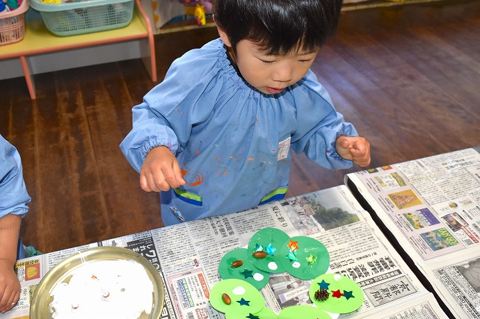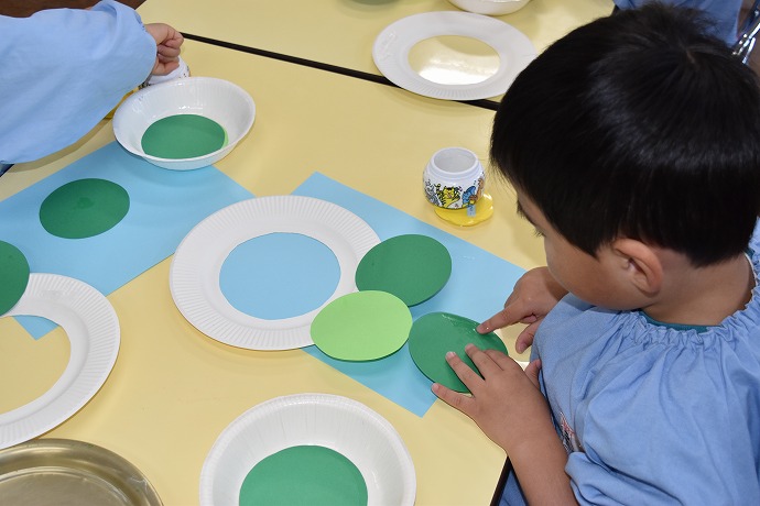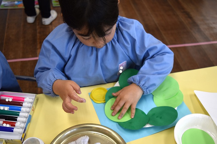 手にのりをつけて貼る作業は入園後たくさん経験してきましたね。