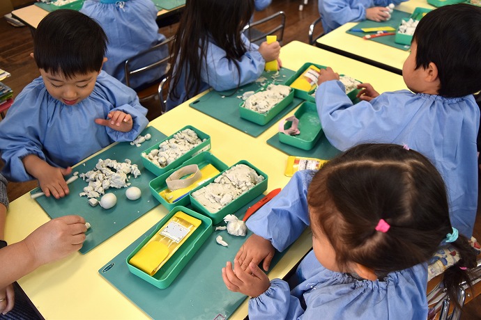 のり付けも粘土も、手をつかうあそびをたくさん行います。