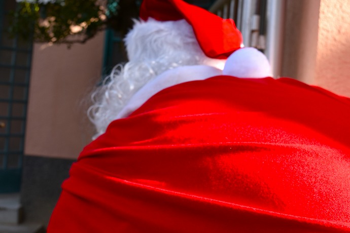 たくさんのプレゼント🎁を抱えたサンタ🎅さんがニコニコ笑顔で登場✨ 忙しそうでまっ白な髪の合間から見えるお顔は少し紅潮していました。