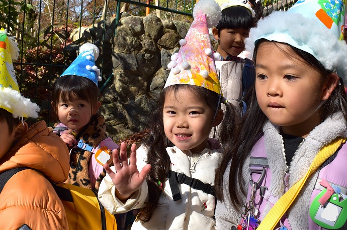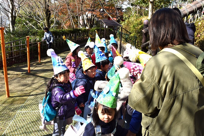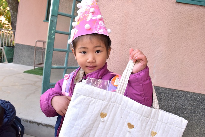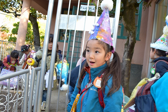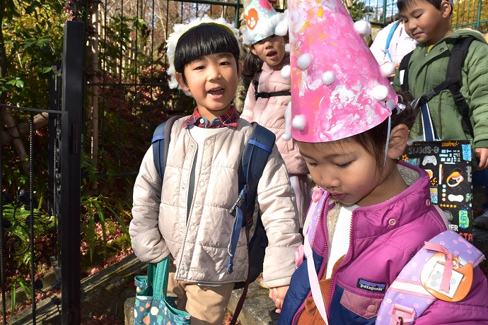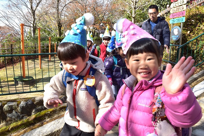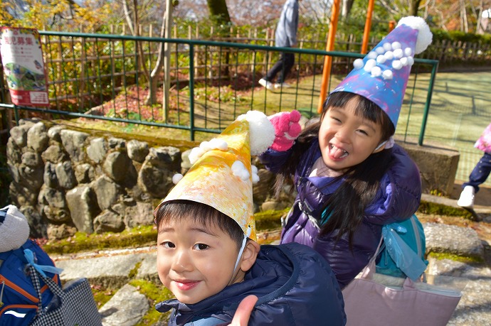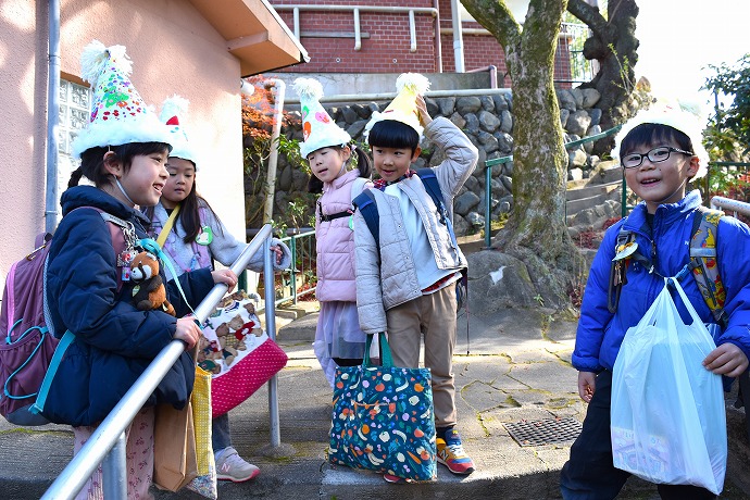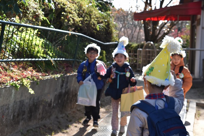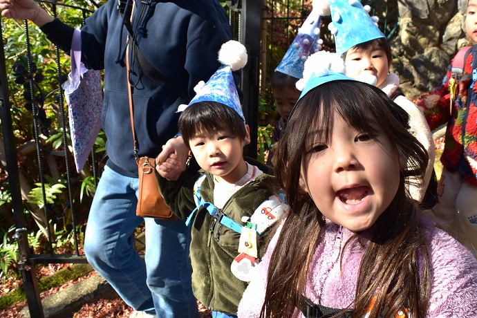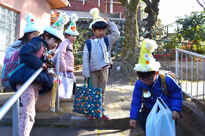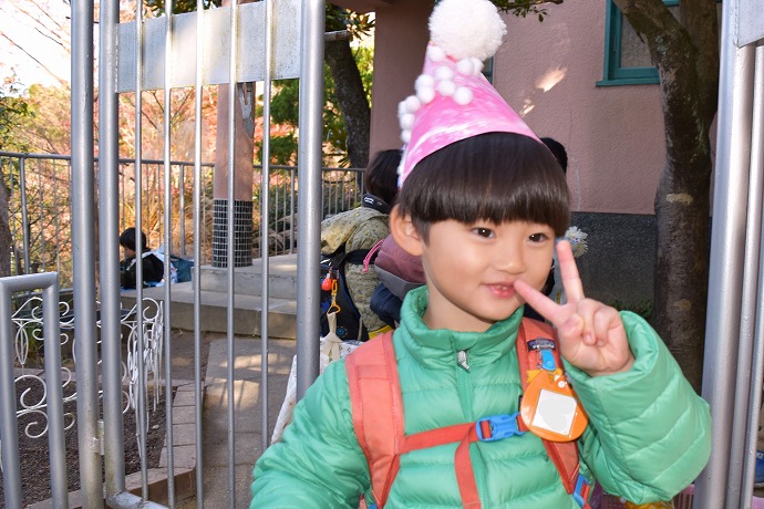そろそろ降園グループにいく時間。クリスマス帽子🎄を被って一緒に駆けていきます。