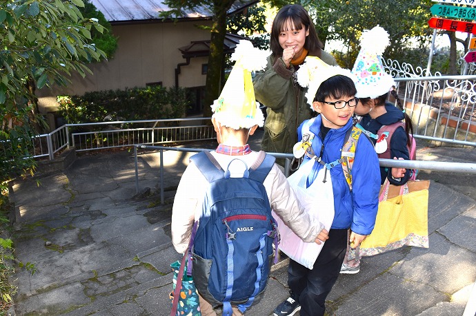 課外教室に残る子以外はお山の下へ向かって下りていきました✾