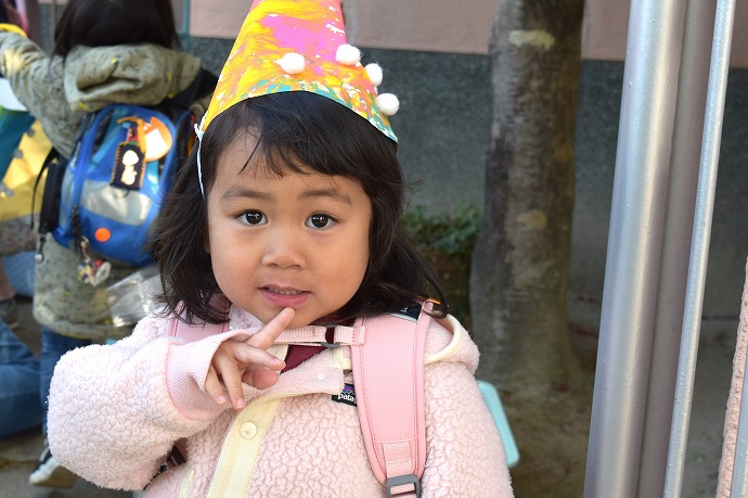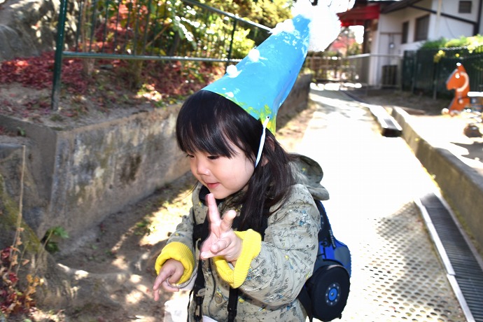 3歳児Rちゃん。お帽子がよく似合うプリンセス👸✨なんです!同じグループだから一緒にいこうね!