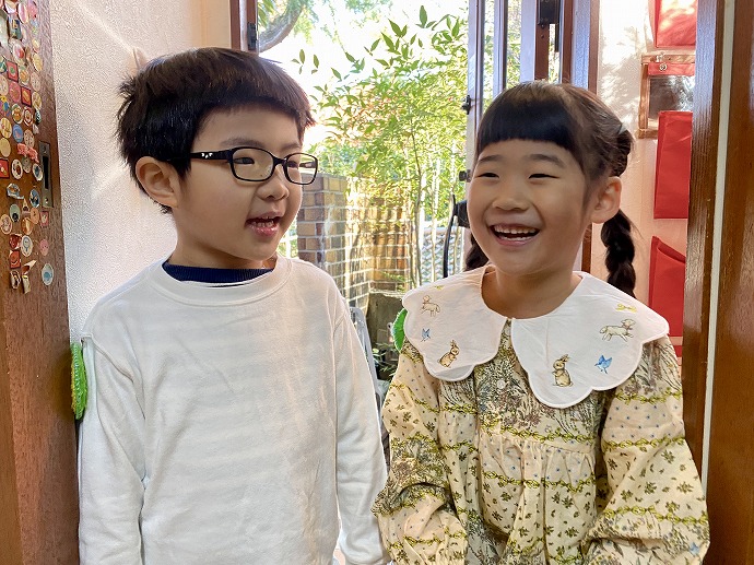 同じく満3歳児Kちゃんを迎える年長のHくん。優しい笑顔です😊✌