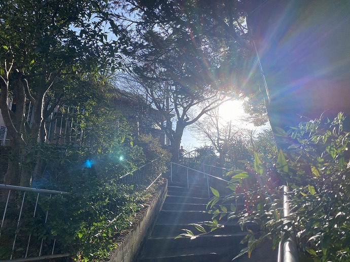 そして各園舎の場所を教えてほしい!と仰るやいなや、さっそく石段をのぼって行かれました。