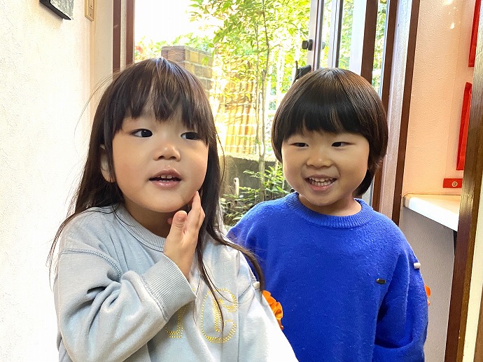 年長Eちゃんが年少さんを迎えにきてピース✌😊