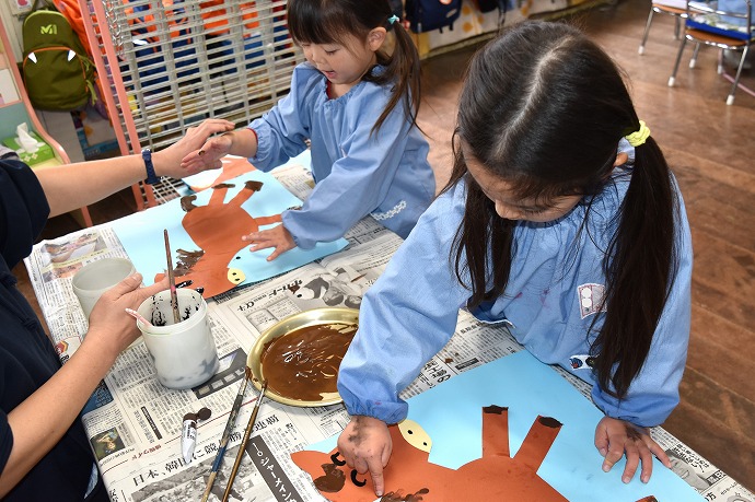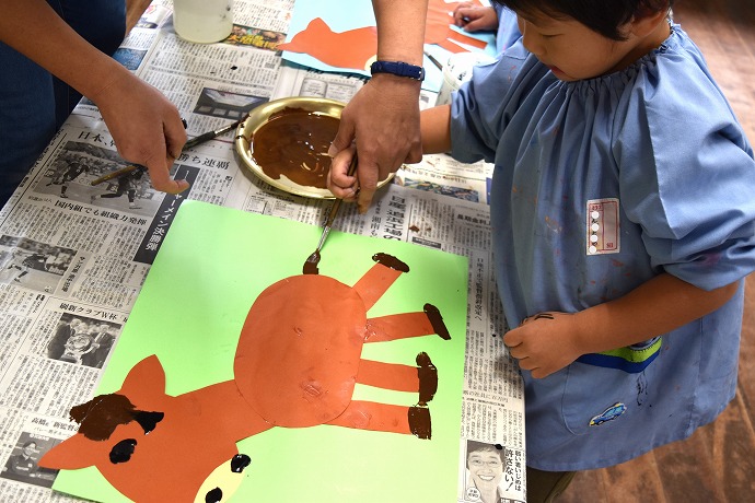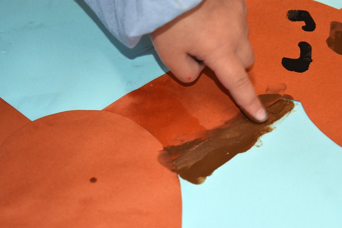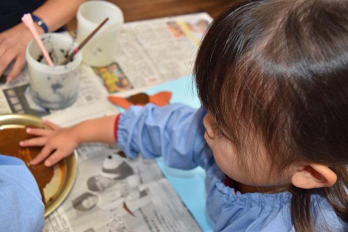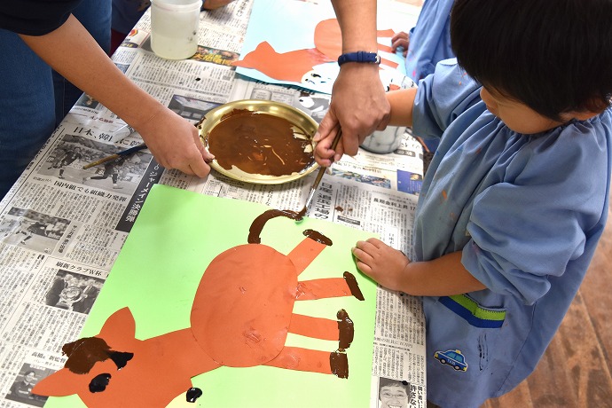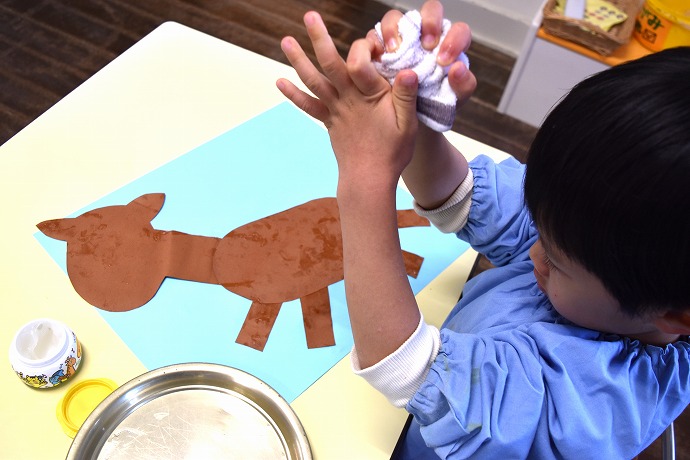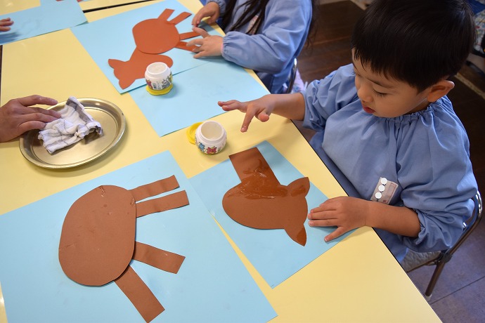 指で描くのおもしろいね。そろそろみんなが描き終えた頃、そろそろおいとましようとすると…