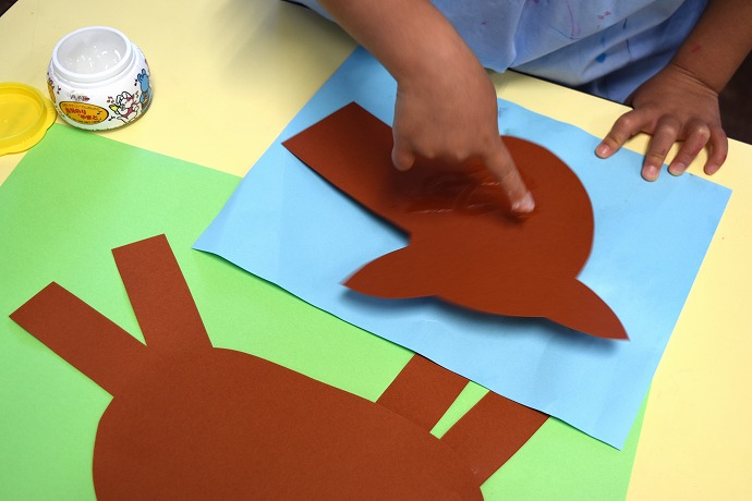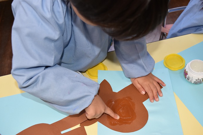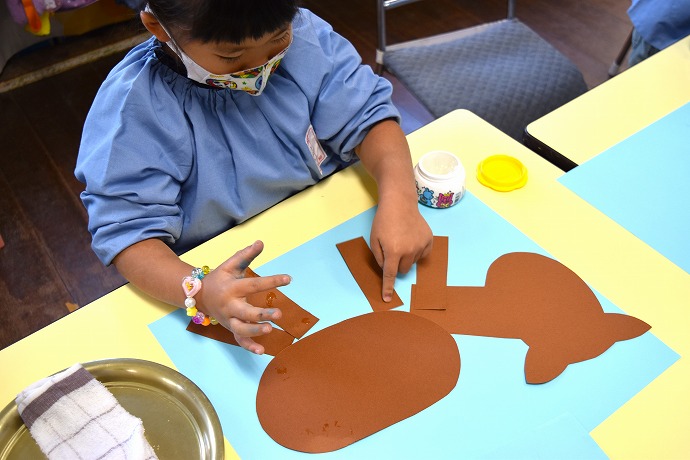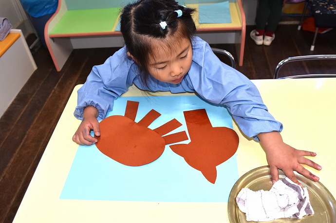 小さい方の水色の画用紙はのりをつけていくときにのせて使います。