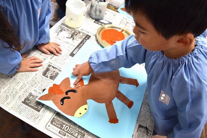 年少クラス 来年の干支〔午(うま)〕~長い脚で来年も力強く前進します🏇~