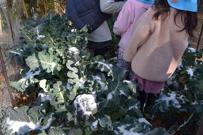 お山がうっすら雪化粧をした寒い日に、みんなで育てたブロッコリーの大きな葉っぱ🌿を感謝していただくことができた有難い日となりました。引き続き畑のお世話をしながらつぼみが大きくなるのを楽しみにできたらと思います。