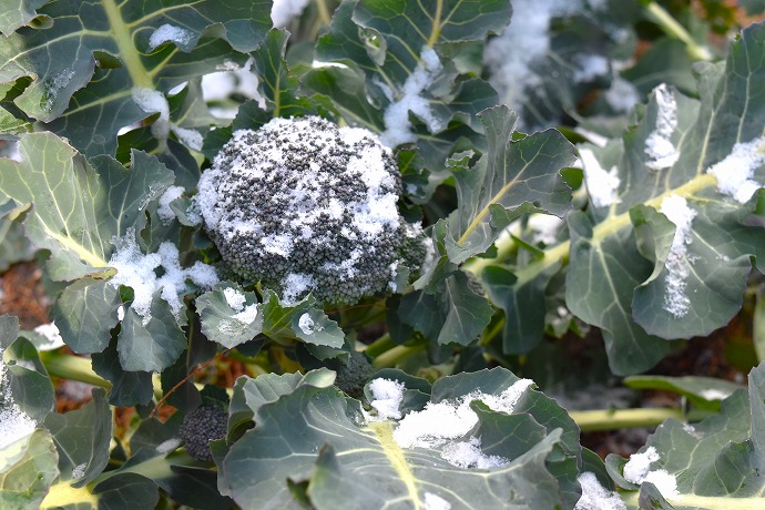 今日はひみつの庭の畑もうっすら雪化粧。つぼみはまだまだ大きくなります。