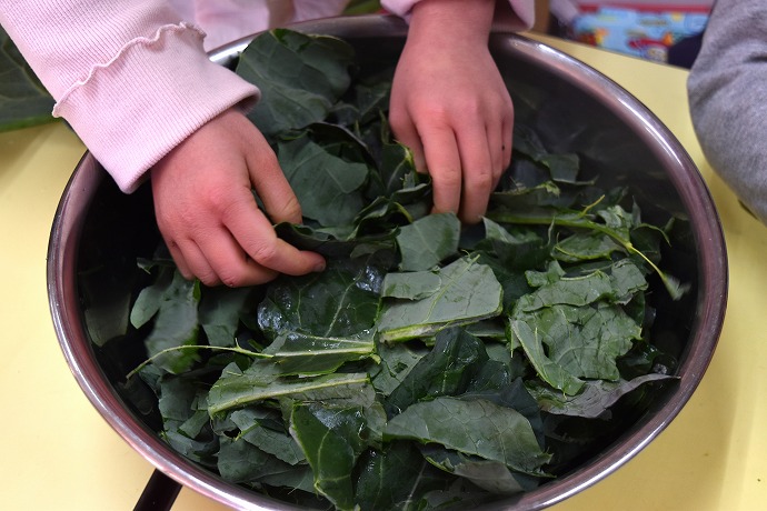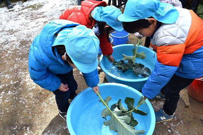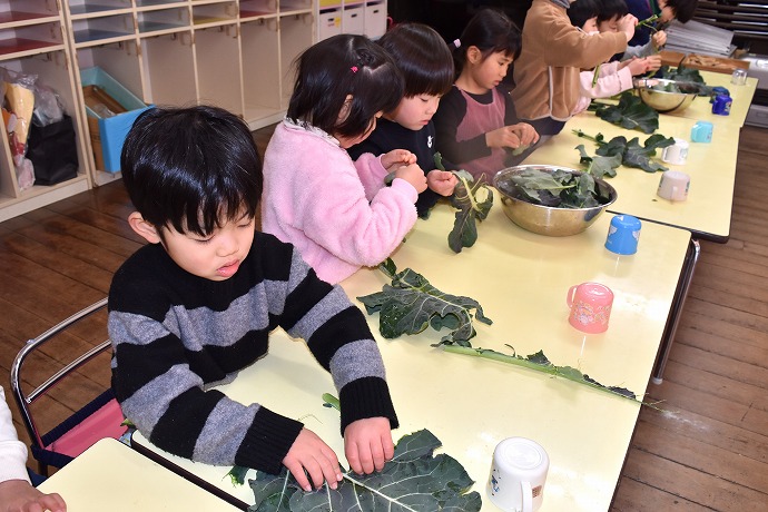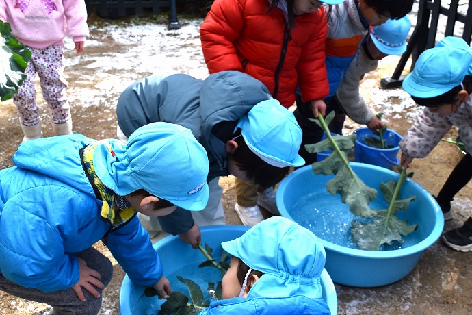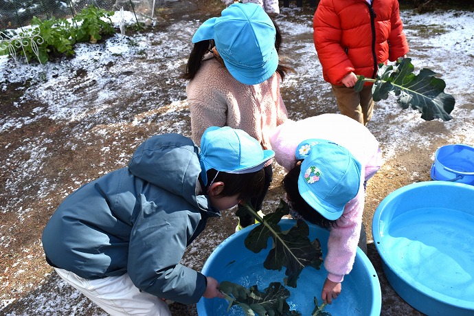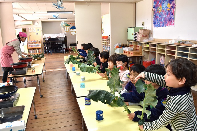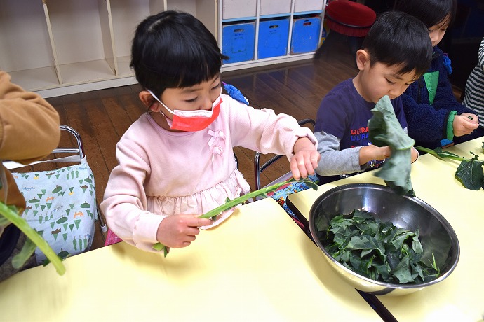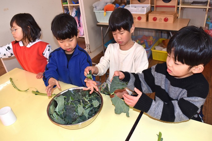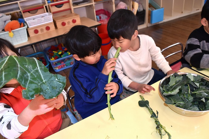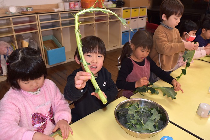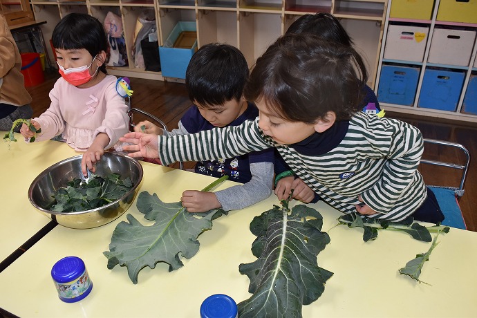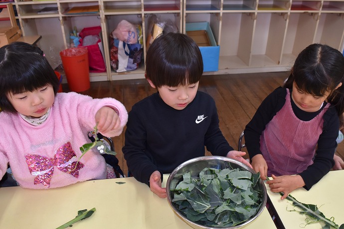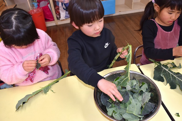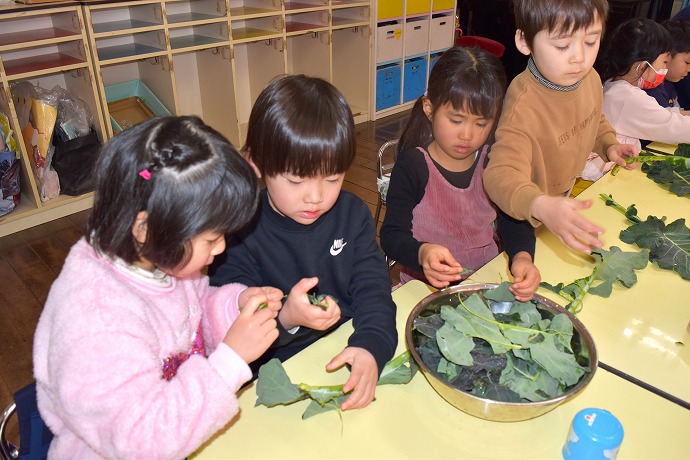 1月22日(木) / 👧🌿👦ブロッコリーの葉の収穫と調理(年中クラス)ほか