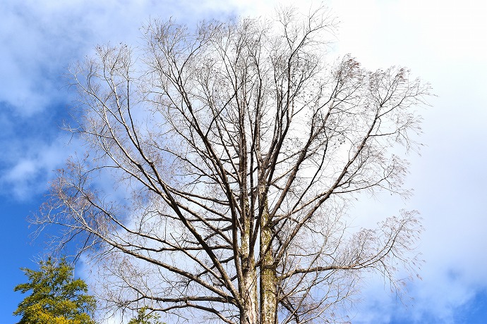 上を見上げるとメタセコイアの木がほぼ葉を落とした姿が見えました。