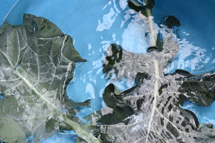 何もついていない綺麗な葉っぱですが水の中で揺らして洗います。