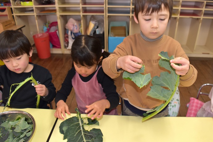 👧🌿👦ブロッコリーの葉の収穫と調理(年中クラス)