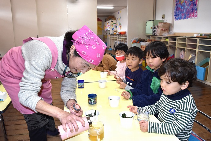 それぞれお茶をコップに入れて準備を終え…
