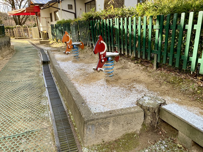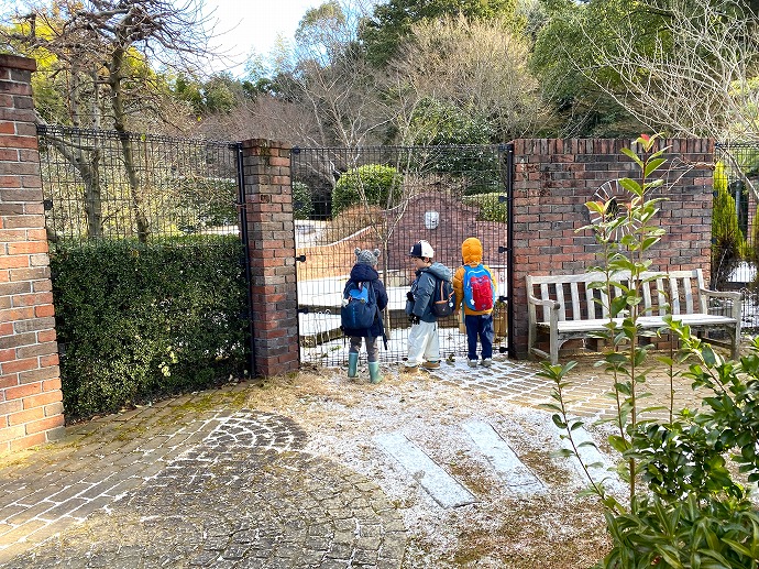 ひみつの庭にも白い雪が一面にうっすら。