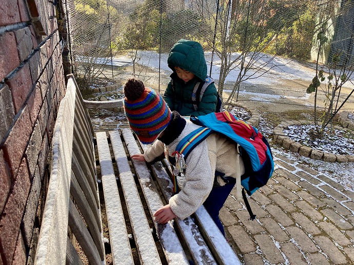 ベンチにも雪があった!