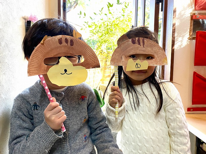 「どうしてもしたかったの…」と。年中クラスのお買い物ごっこでつくった”なりきり仮面”です。年中クラスの時を懐かしく思い出します😊♪