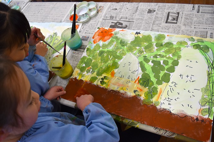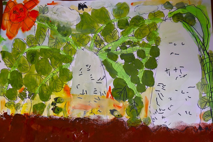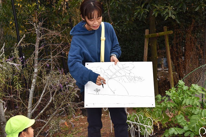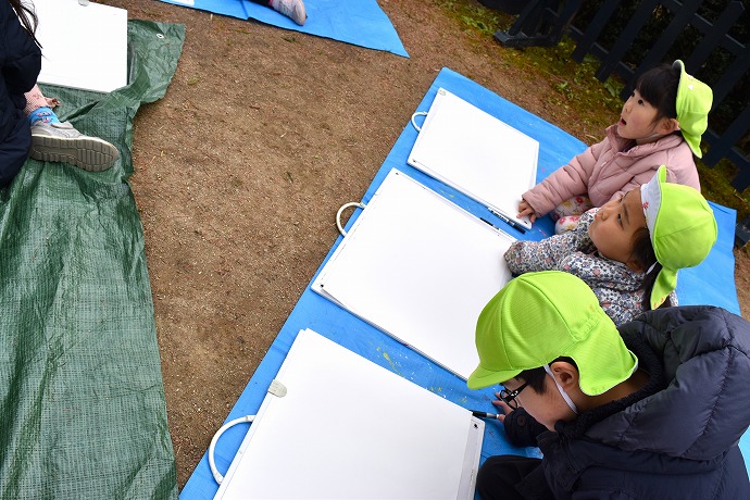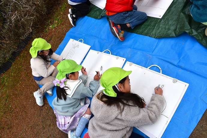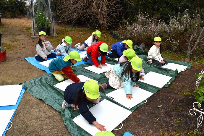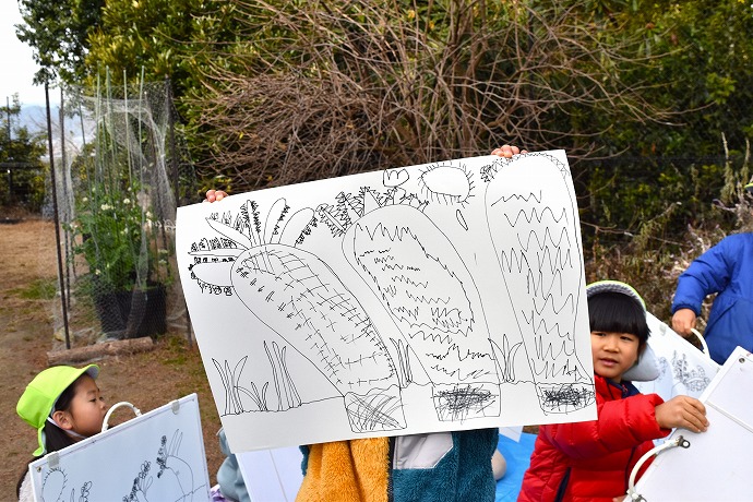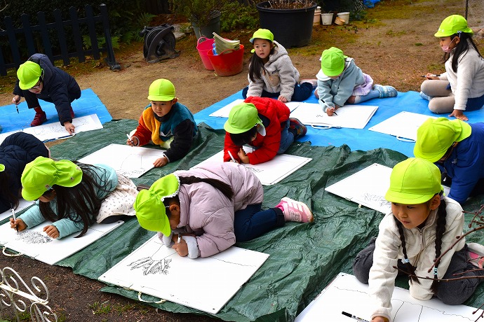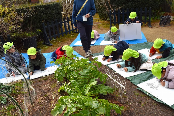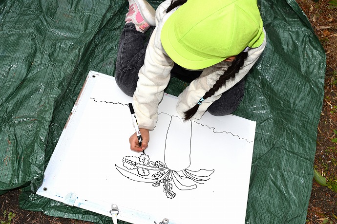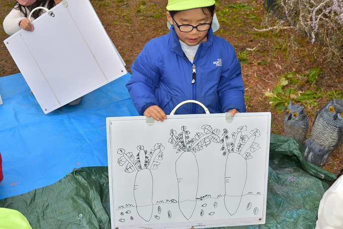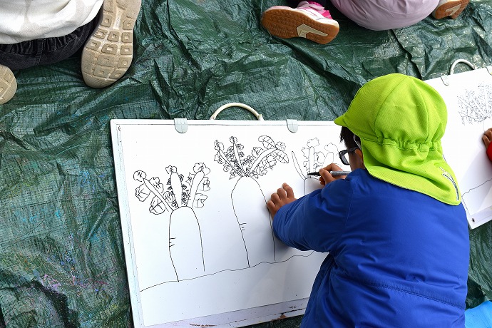 午前10時半。年長クラスがひみつの庭の大根の畑に画板持参で集ったのが15日(木)のこと。この日は土に植わった状態の大根を描き、続いて大根を数本、翌日の調理のために収穫をしました🌿(収穫の様子は以前のblogあり)