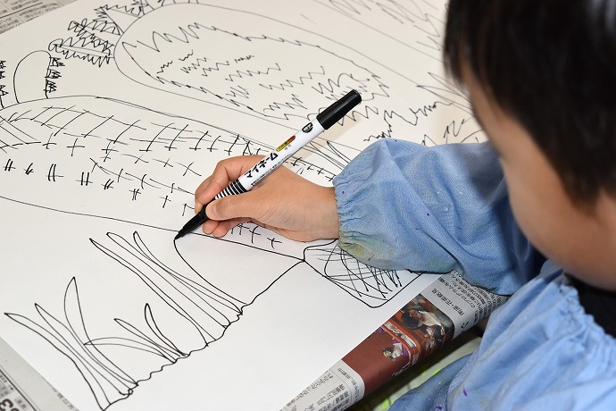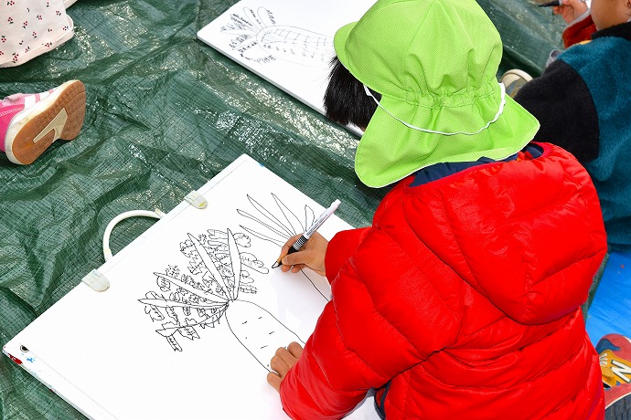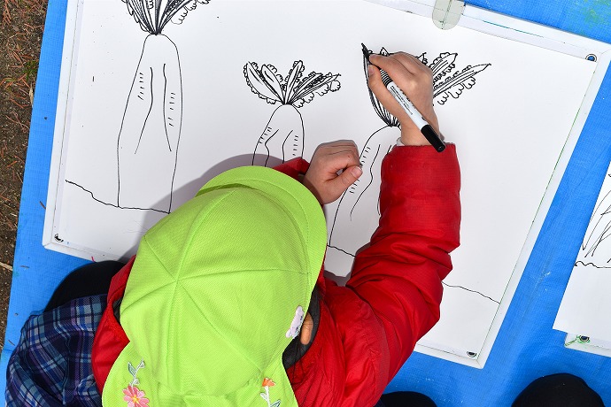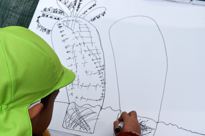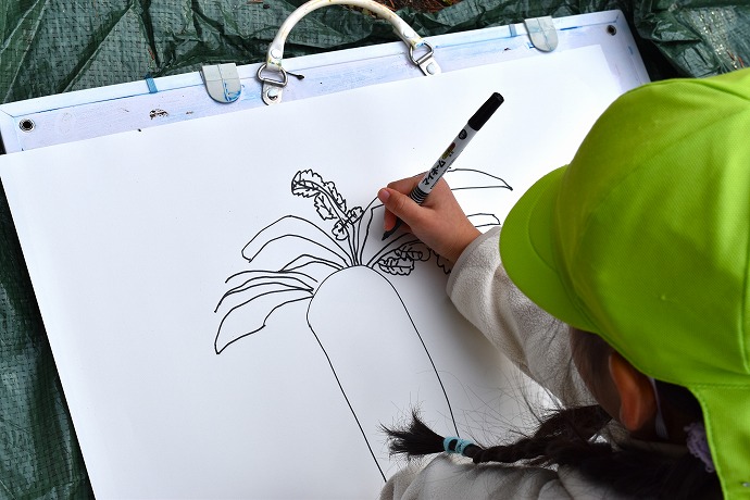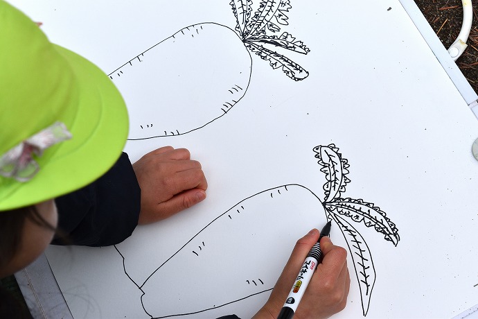この日は油性ペンで。大根と葉は一体に。